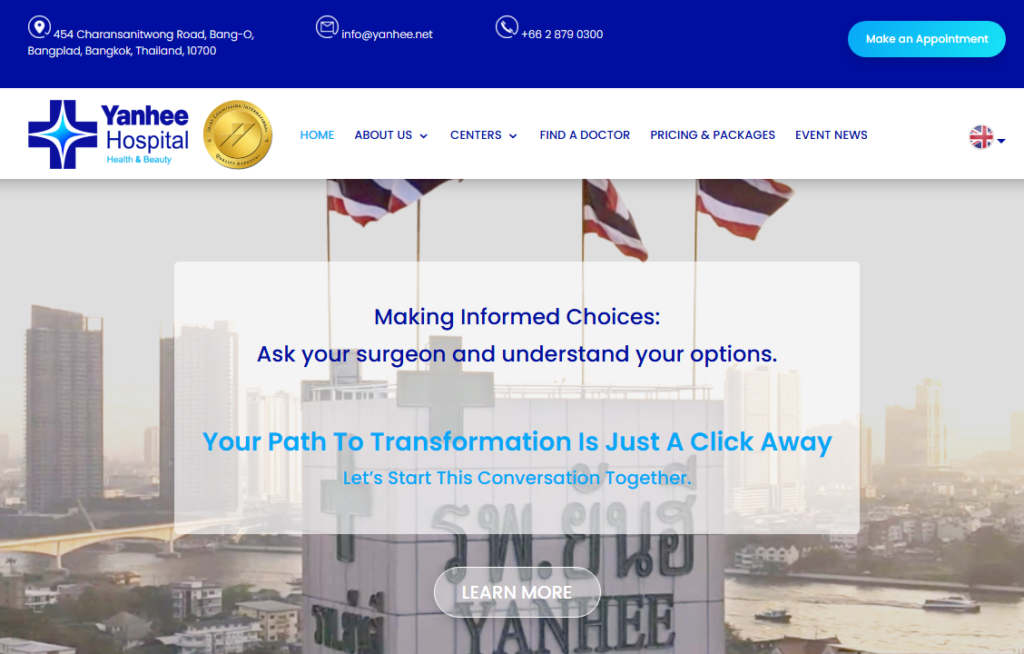 โรงพยาบาลยันฮี เป็นโรงพยาบาลศัลยกรรมความงามชื่อดังในกรุงเทพฯ เปิดให้บริการด้านเสริมหน้าอกและศัลยกรรมอื่น ๆ มากกว่า 20 ปี มีทีมแพทย์ผู้เชี่ยวชาญและประสบการณ์สูง พร้อมเทคนิคหลากหลายให้เลือกตามความต้องการของผู้ป่วย