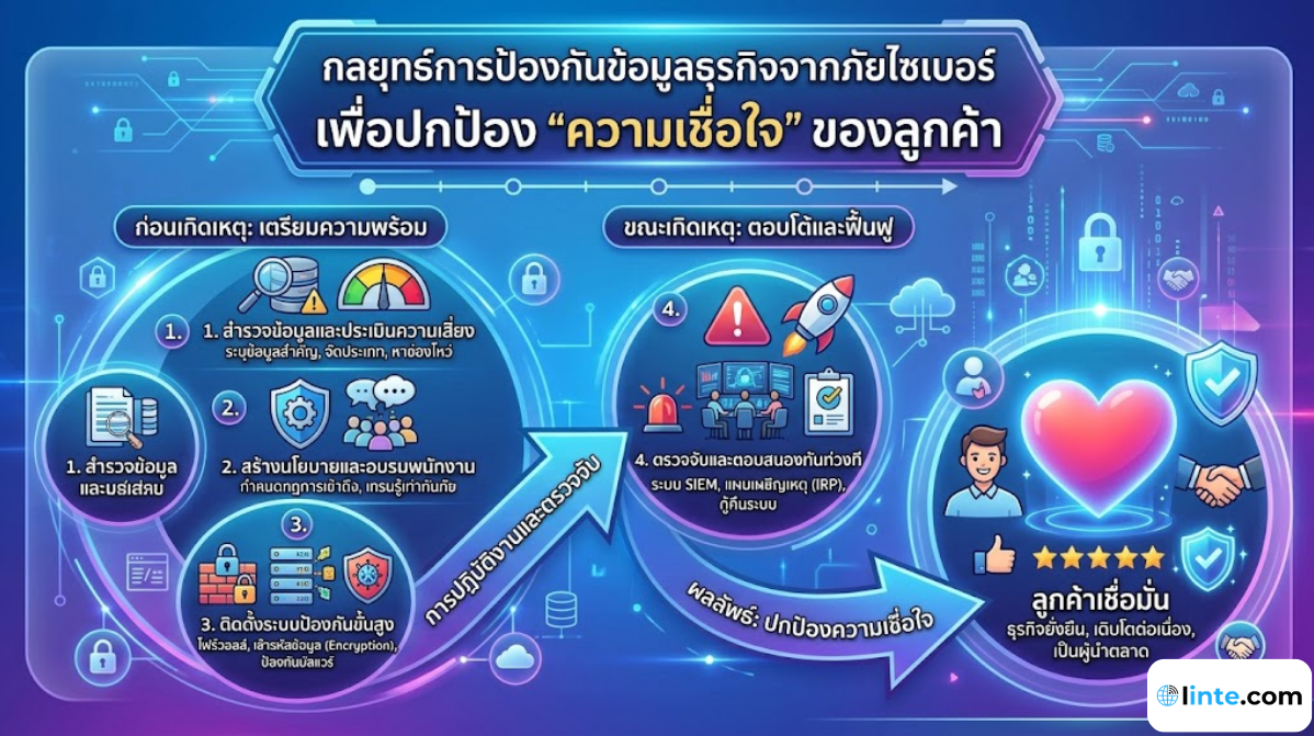 ลองจินตนาการถึงเช้าวันจันทร์ที่คุณเดินเข้ามาในออฟฟิศ พร้อมแก้วกาแฟที่โปรดปราน คุณเปิดคอมพิวเตอร์เพื่อเตรียมรันแคมเปญการตลาดที่วางแผนมาอย่างดี แต่หน้าจอที่ควรจะปรากฏระบบหลังบ้าน กลับกลายเป็นหน้าต่างสีดำพร้อมข้อความข่มขู่เรียกค่าไถ่ (Ransomware) ข้อมูลรายชื่อลูกค้า แผนธุรกิจ และประวัติการทำธุรกรรมทั้งหมด ถูกล็อกและไม่สามารถเข้าถึงได้อีกต่อไป… นี่ไม่ใช่พล็อตภาพยนตร์ระทึกขวัญครับ แต่มันคือฝันร้ายที่เกิดขึ้นจริงกับธุรกิจนับไม่ถ้วนในยุคนี้ เมื่อเราก้าวเข้าสู่โลกออนไลน์อย่างเต็มตัว การป้องกันข้อมูลธุรกิจจากภัยไซเบอร์ จึงไม่ได้เป็นเพียงหน้าที่ของแผนกไอทีอีกต่อไป แต่มันคือ “หัวใจ” ของการดำเนินธุรกิจที่ผู้บริหารทุกคนต้องตระหนักถึง